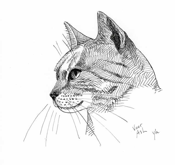 This cat is made with Indian ink and dates from around 2007. In this case, I used a photo instead of a model.